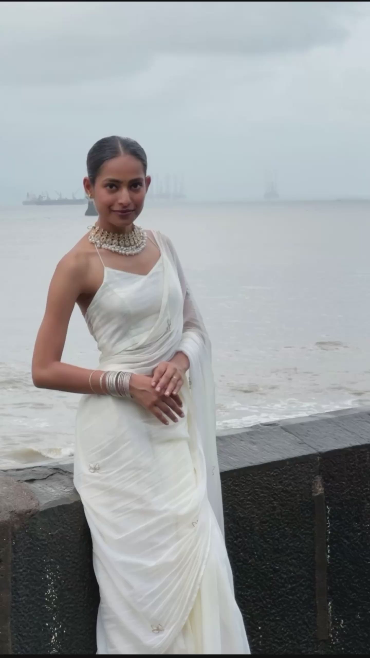 Elevate your elegance with our White chiffon saree, featuring delicate white and gold handwork and a shimmering gold border. It is lightweight and effortlessly graceful—perfect for any occasion.